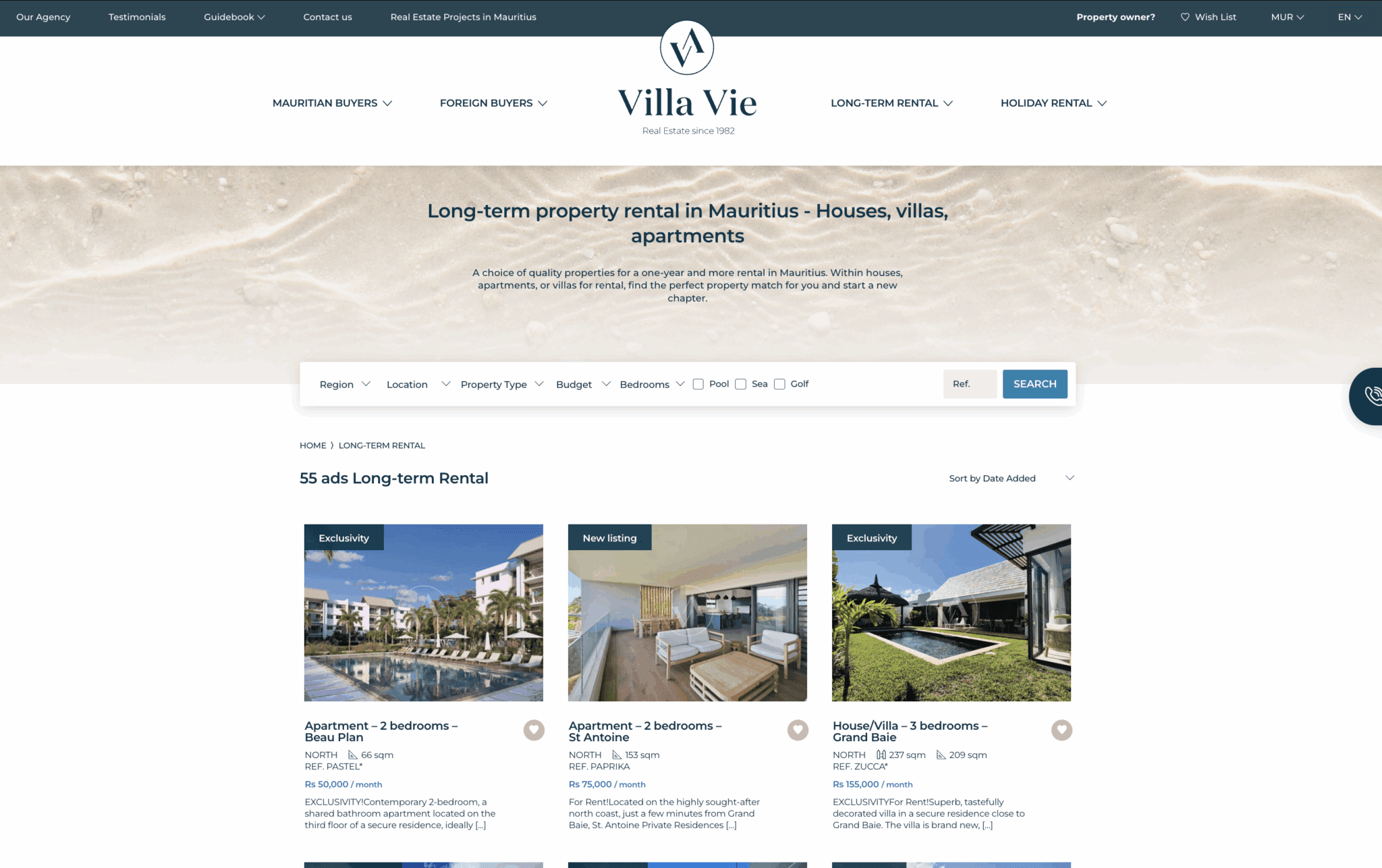 Sotheby’s International Realty Mauritius is a top real estate agency known for luxury property listings in beautiful Mauritius. Specializing in high-end properties, Sotheby’s International Realty Mauritius offers a curated collection of exquisite homes, villas, apartments, and estates in some of the most sought-after locations across the island to choose from. Whether you’re seeking a beachfront retreat, a private villa with panoramic views, or an exclusive estate, Sotheby’s International Realty provides a vast selection of almost 100 exceptional properties for long- term rentals to pick from. Their very experienced team of agents possesses a deep knowledge of the local real estate market, enabling them to offer invaluable insights and guidance to clients. The website is designed to facilitate a smooth property search journey, allowing users to filter properties based on location, features, and price range. Furthermore, Sotheby’s International Realty Mauritius goes beyond just property listings, they also provide valuable information regarding the long-term rental market on its portal to help you understand property trends and make smart choices.