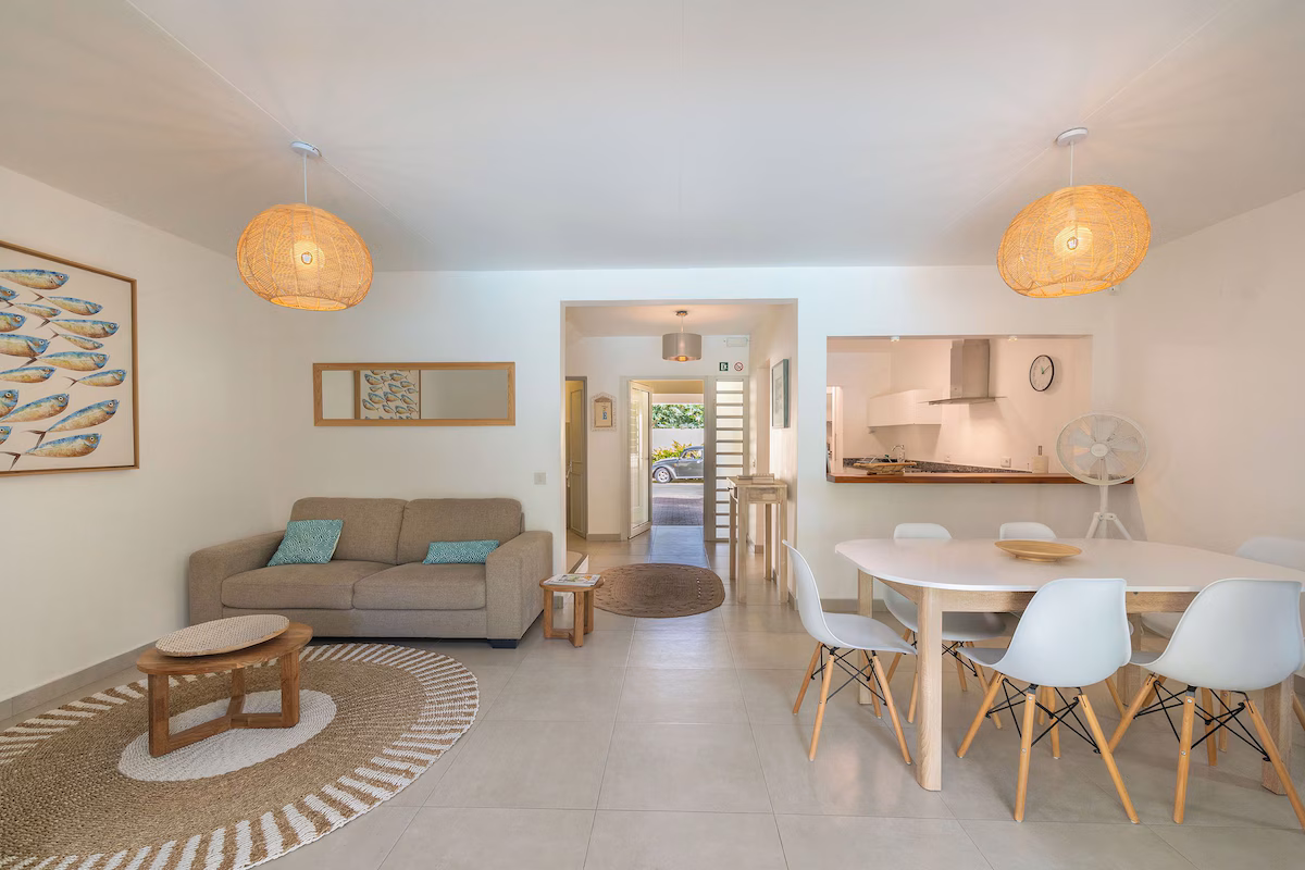 - L'ambiance : Douillette et ensoleillée sur la côte. Cette villa est un véritable coup de cœur. Située à seulement 200 mètres de la plage (il suffit de traverser une rue !), c'est un lumineux sanctuaire de 3 chambres avec une piscine privée et un jardin fleuri. Elle capture ce style de vie authentique de Pereybere où tout est facile, calme et sécurisé.