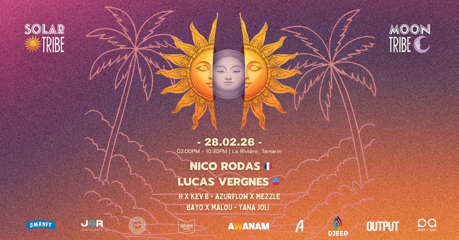 Solar Tribe donne le coup d'envoi de sa première édition 2026 avec une fête de jour ensoleillée au bord de la rivière Tamarin. Cette expérience immersive met l'accent sur la connexion et les rythmes house et tech-house à haute énergie, avec un set B2B exclusif du Réunionnais Lucas Vergnes et de l'expérimenté Nico Rodas. Au coucher du soleil, le voyage se poursuit avec "Moon Tribe", une after-party intime limitée à 300 personnes au restaurant Ava (RM Club). Passez des grooves de l'heure dorée à une ambiance lunaire de fin de soirée avec une programmation locale massive comprenant Yana Joli, Azurflow et Malou.
