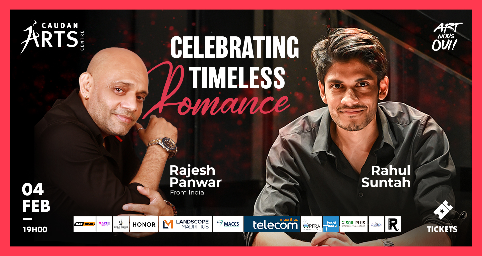 Entrez dans l'âge d'or de la musique avec "Celebrating Timeless Romance", un concert en duo unique qui marie la voix pleine d'âme du chanteur Rajesh Panwar, basé à Mumbai, et les arrangements novateurs au piano de la star mauricienne Rahul Suntah. Inspiré par le légendaire Mohammad Rafi, Rajesh apporte une émotion profonde aux classiques hindis bien-aimés, tandis que Rahul y ajoute une touche contemporaine en utilisant la technologie des boucles et les techniques de crossover. Entre les duos nostalgiques et les reprises au piano solo de Rahul des succès de Bollywood, ce spectacle de 2 heures et 15 minutes est une soirée à ne pas manquer pour les amoureux de la mélodie et de l'art interculturel.
