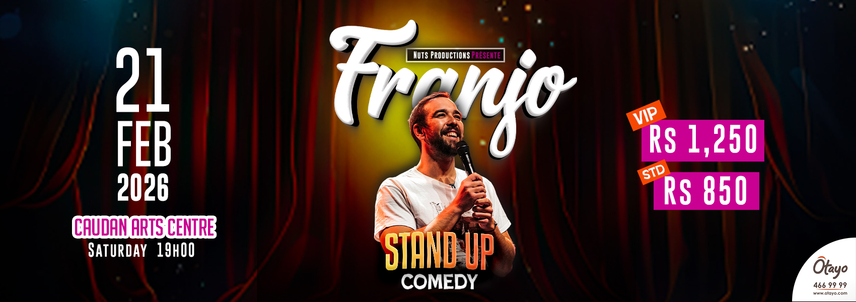 Pour la toute première fois, la sensation comique française Franjo apporte son esprit acéré à l'île Maurice. Étoile montante découverte en ligne et habitué des salles parisiennes d'élite comme le Jamel Comedy Club, Franjo s'est forgé une réputation pour son stand-up plein d'énergie et ses improvisations brillantes. Ce spectacle acclamé, peaufiné lors de la première partie de Paul Mirabel, plonge dans les absurdités de la vie quotidienne avec une honnêteté sans filtre. Bien plus intense qu'une vidéo YouTube, cette expérience en direct invite le public à faire partie du spectacle pendant une heure de rire ininterrompu.