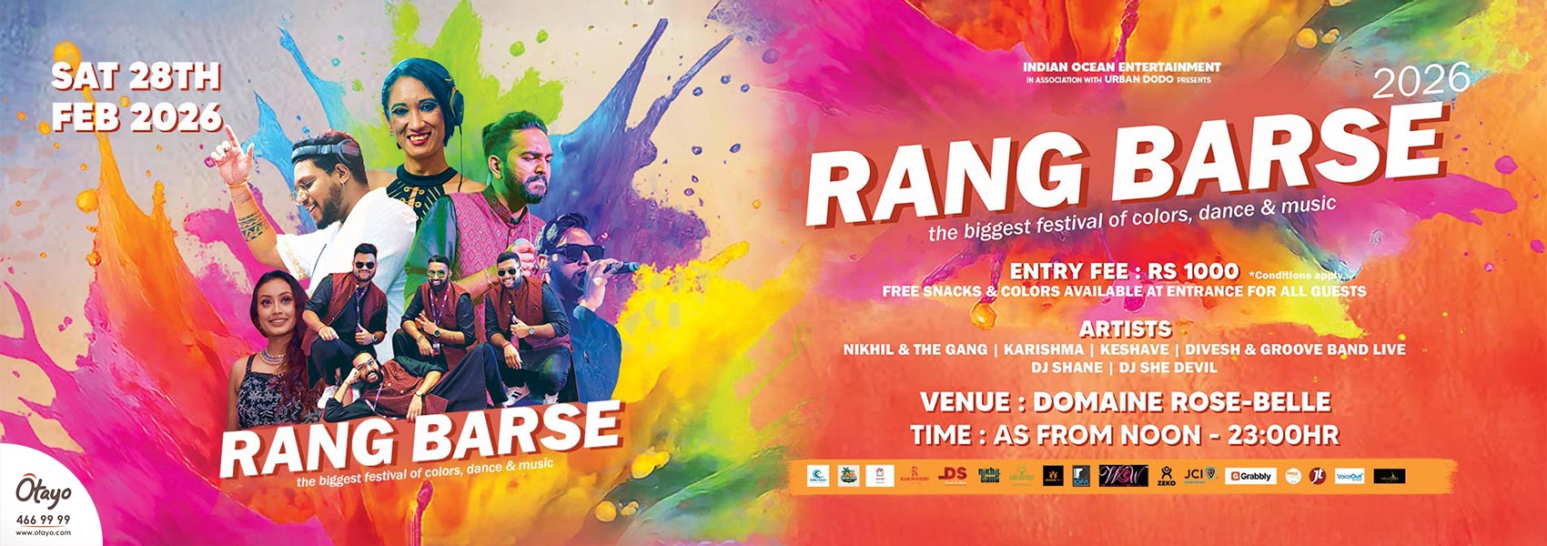 Célébrez la fête des couleurs lors du plus grand festival Holi en plein air de l'île Maurice. Rang Barse 2026 est une journée vibrante et familiale où les différences s'estompent dans un kaléidoscope de couleurs. Les festivités débutent à midi par un défilé de mode, suivi à 15 heures par le rythme des dhols traditionnels. Vous pourrez profiter d'un espace de restauration végétarienne 100% et d'une programmation musicale en direct avec Nikhil & The Gang, Karishma, Keshave et Divesh & Groove Band, tandis que les DJ She Devil et Shane maintiendront l'énergie à un niveau élevé jusqu'à une heure tardive. Les couleurs et les en-cas sont fournis gratuitement - il suffit d'apporter ses meilleures vibrations et ses chaussures de danse !