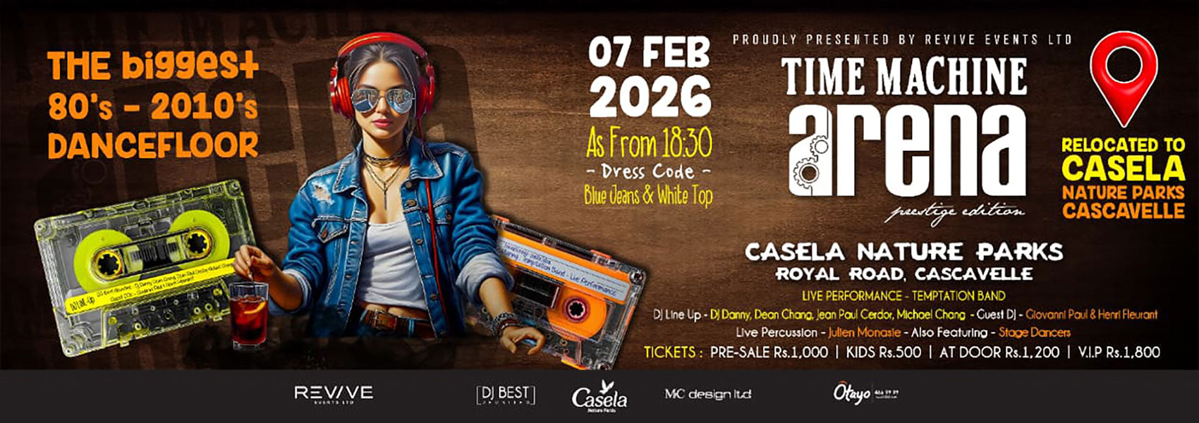 Préparez-vous à voyager dans le temps lors de la plus grande expérience de dancefloor des années 80 à 2010 de l'île Maurice. Organisée dans les magnifiques parcs naturels de Casela, cette "édition prestige" débute par un concert puissant de Temptation Band avant de laisser la place à DJ Best Reunited, composé de Dean Chang, Danny Parmanun, Jean Paul Cerdor et Michael Chang. Avec les DJ invités Giovanni Paul et Henri Fleurant, les percussions de Julien Monasie et des danseurs énergiques, la soirée promet un voyage ininterrompu à travers quatre décennies de tubes emblématiques. Enfilez votre blue-jean et votre haut blanc pour cette célébration musicale immersive de la nostalgie et de l'énergie pure.